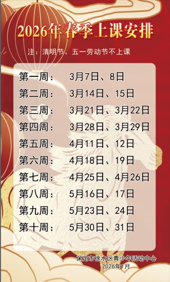 2026年2月7日--2026年3月8日。注:请各位家长务必慎重选择,报名成功后不转班、培训过半后不退费。